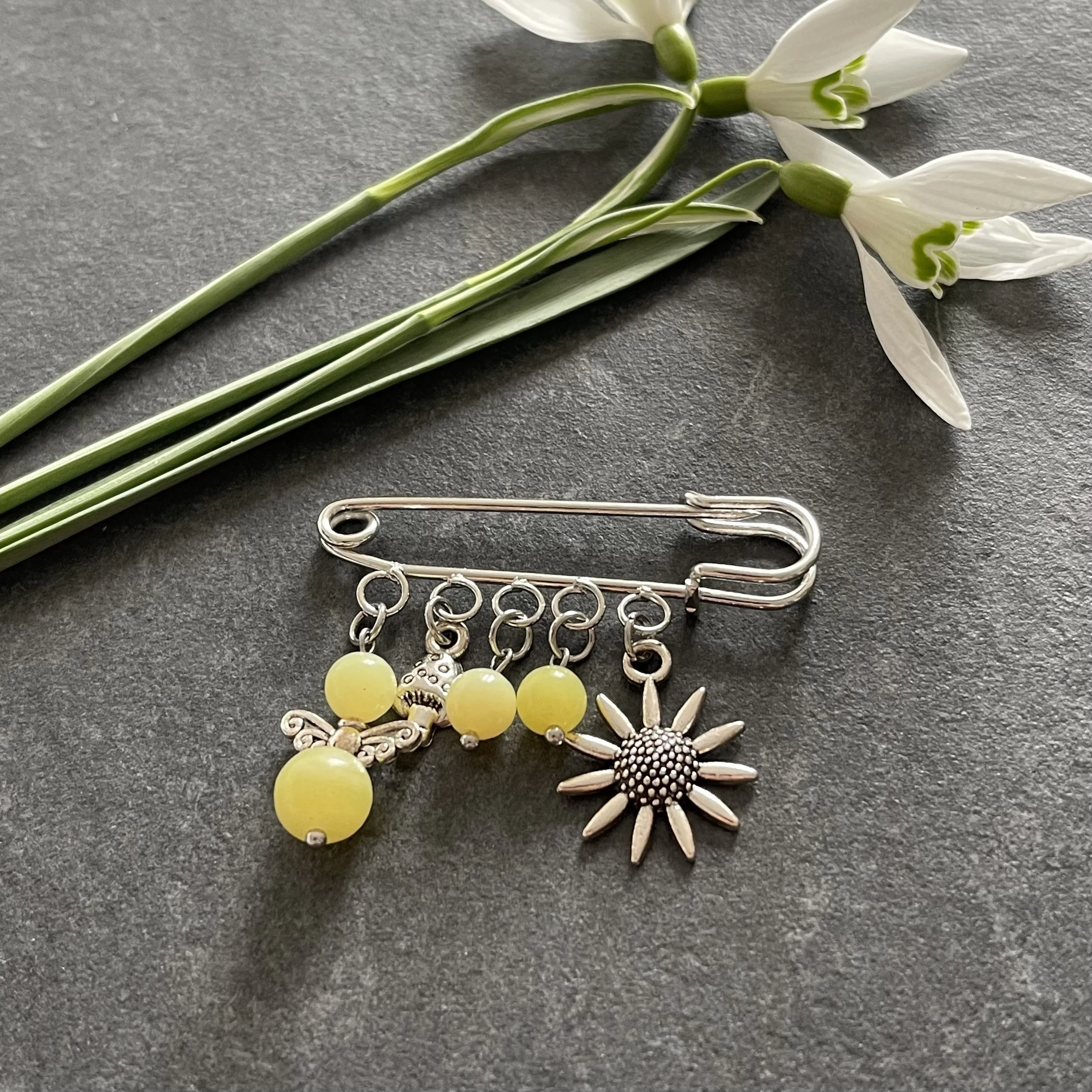 Our favorite yellow stones are Agate, Jade, Citrine, Pyrite, Amber and Ametrine (a combination of yellow and purple).