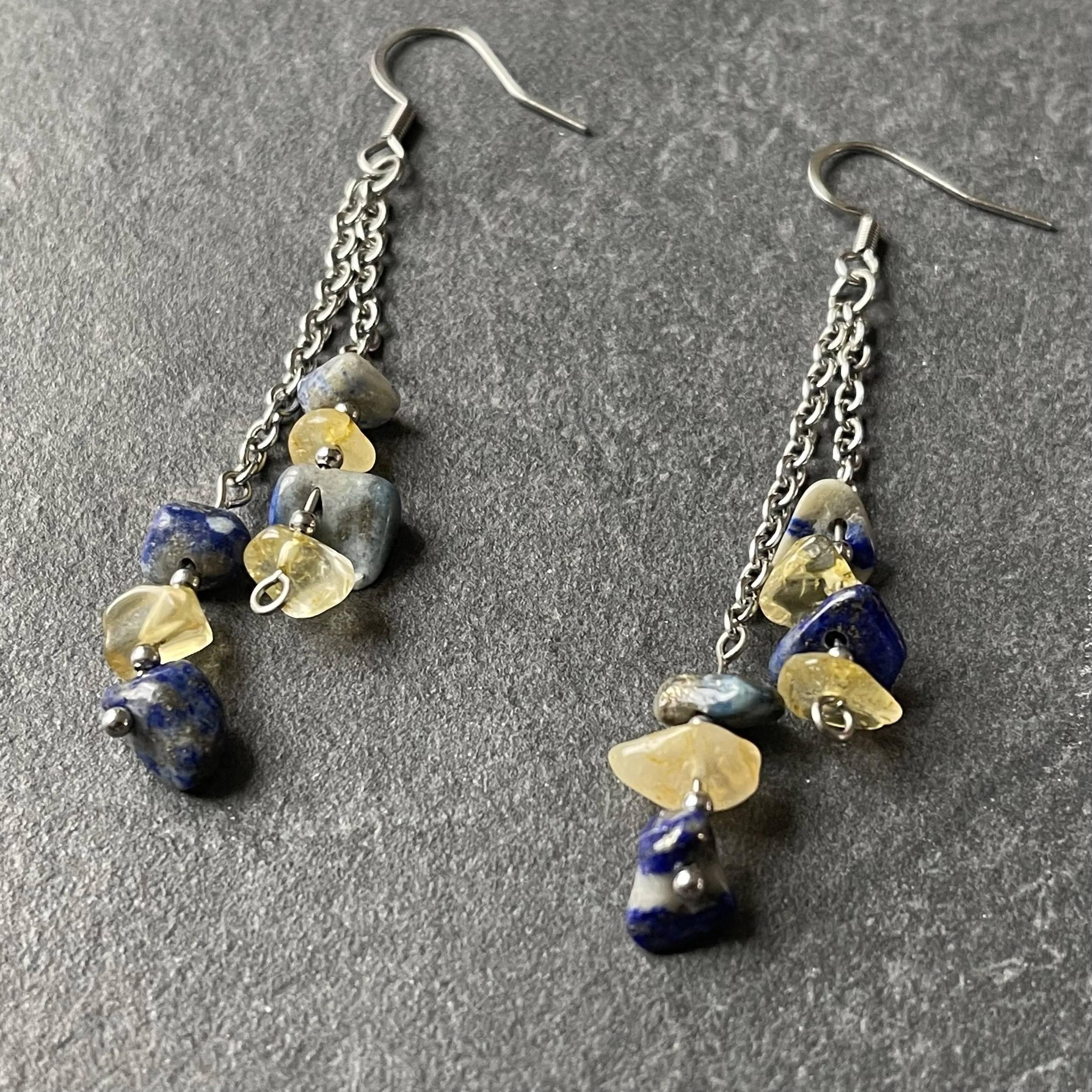 Our favourite blue gemstones are: Blue Apatite, Blue Agate, Sodalite, Lapis Lazuli, Fluorite, Chrysocolla and Turquoise.